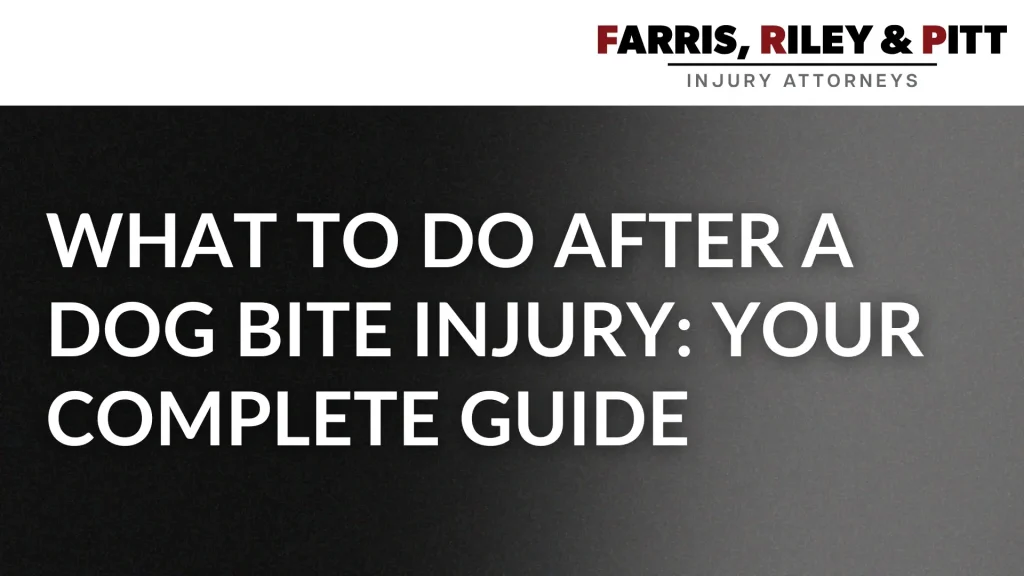 Dog bites happen suddenly and can leave you with serious injuries, medical bills, and difficult questions about what comes next. In Alabama, dog owners are responsible for the injuries their dogs cause. Whether the bite was minor or severe, knowing your rights and taking the right steps protects your health and your legal claim. This guide walks you through everything you need to do after a dog bite, from immediate first aid to understanding Alabama law to pursuing compensation. If you’ve been bitten, you don’t have to handle this alone. Farris, Riley & Pitt, LLP has helped dog bite victims recover the compensation they deserve.