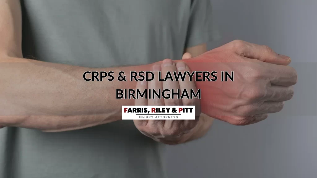 Are you or your loved one struggling with RSD or CRPS in Jefferson County because of an accident caused by another party’s negligence? You can have the legal team atFarris, Riley & Pitt, LLP review your case and discuss all of your legal options when you call (205) 324-1212 or contact us to schedule a free consultation.